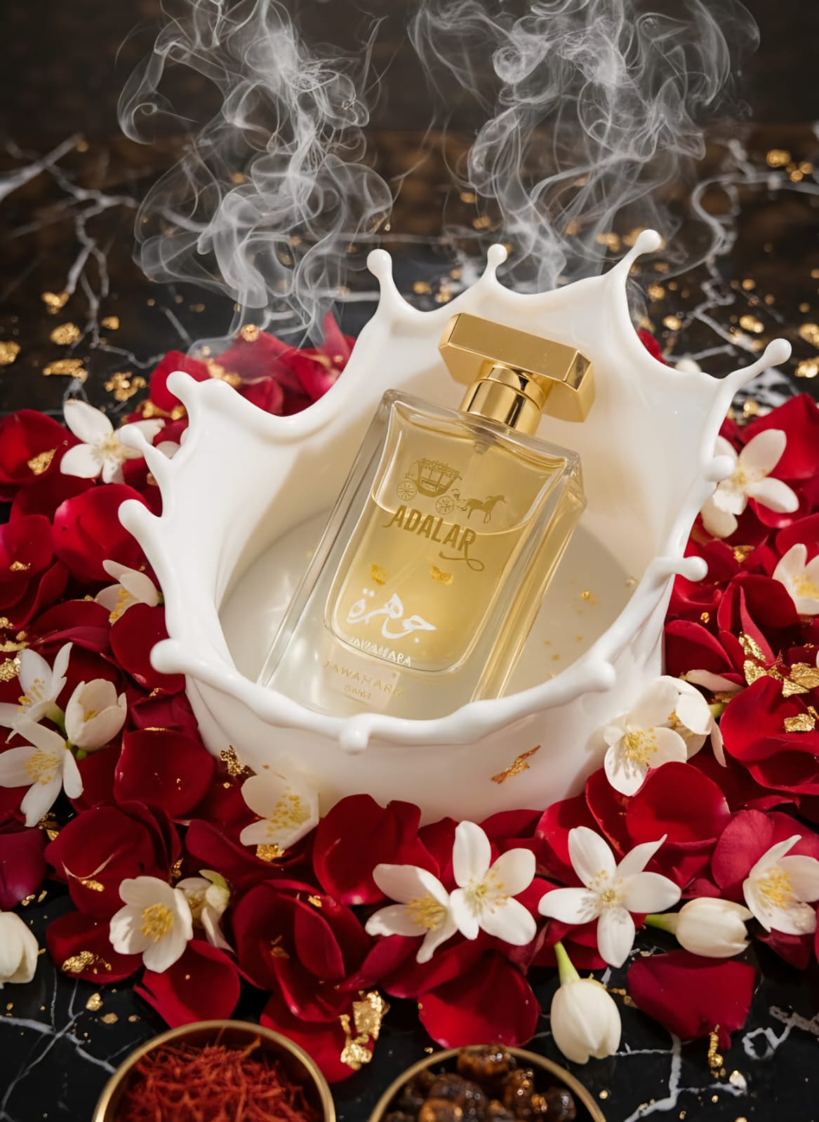 JAWHARA ADALAR is a magnificent Arabian women's fragrance designed for those who appreciate timeless elegance. It harmoniously blends potent, rich, and deeply resonant notes, offering a powerful, diffusive, and exceptionally long-lasting scent.