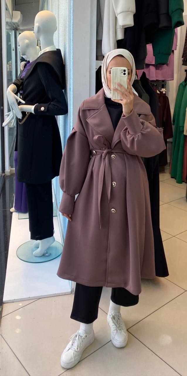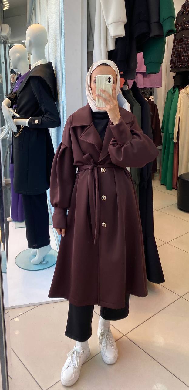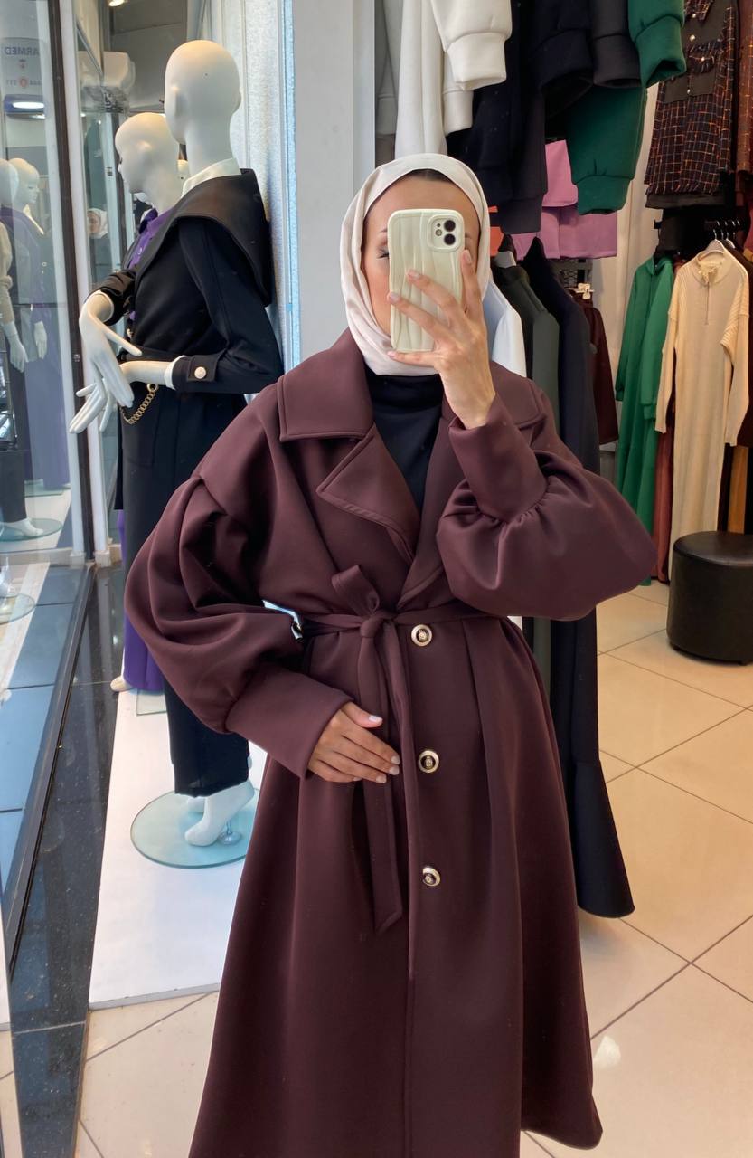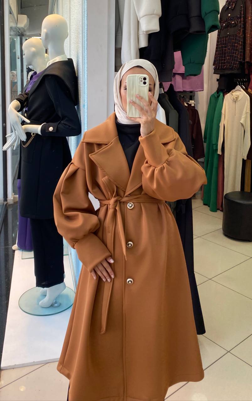 تألقي بمظهر كلاسيكي ساحر مع هذا المعطف الطويل المصنوع من نسيج قطني ناعم ومتين، والذي يمتاز بأكمام منفوخة عصرية وحزام خصر أنيق يبرز جمال قوامك ويمنحك الدفء والراحة في أرقى مناسباتك في الإمارات.