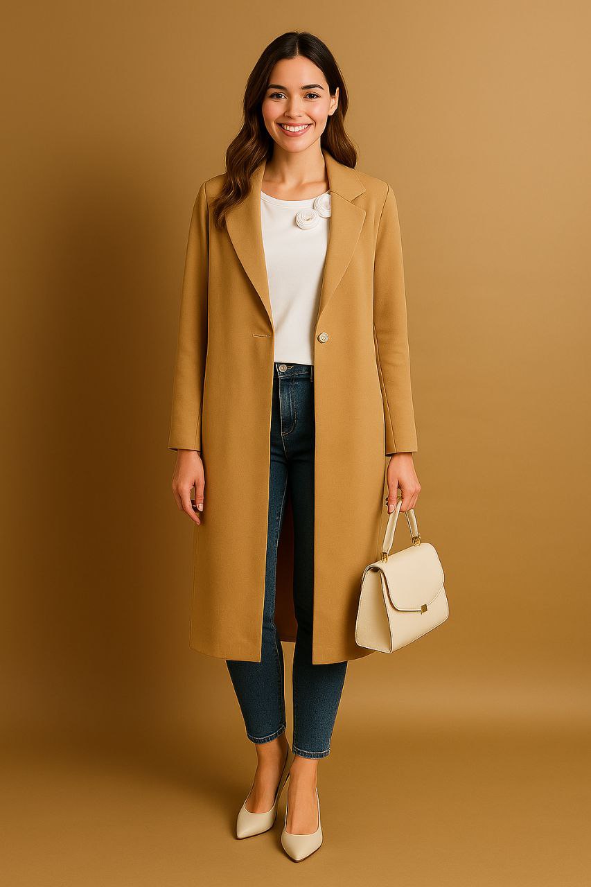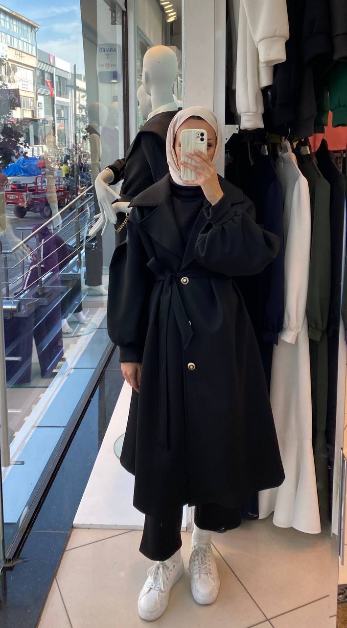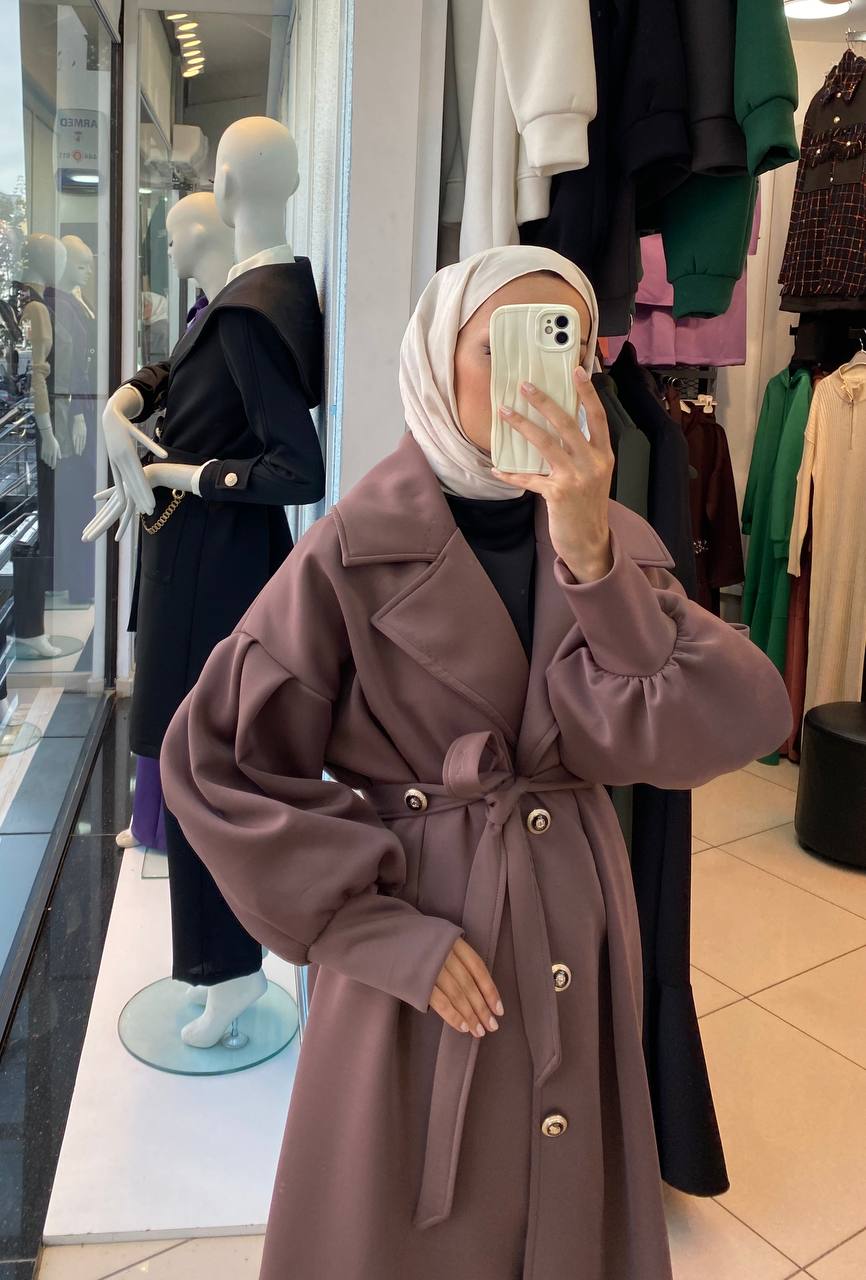 تألقي بمظهر كلاسيكي ساحر مع هذا المعطف الطويل المصنوع من نسيج قطني ناعم ومتين، والذي يمتاز بأكمام منفوخة عصرية وحزام خصر أنيق يبرز جمال قوامك ويمنحك الدفء والراحة في أرقى مناسباتك في الإمارات.