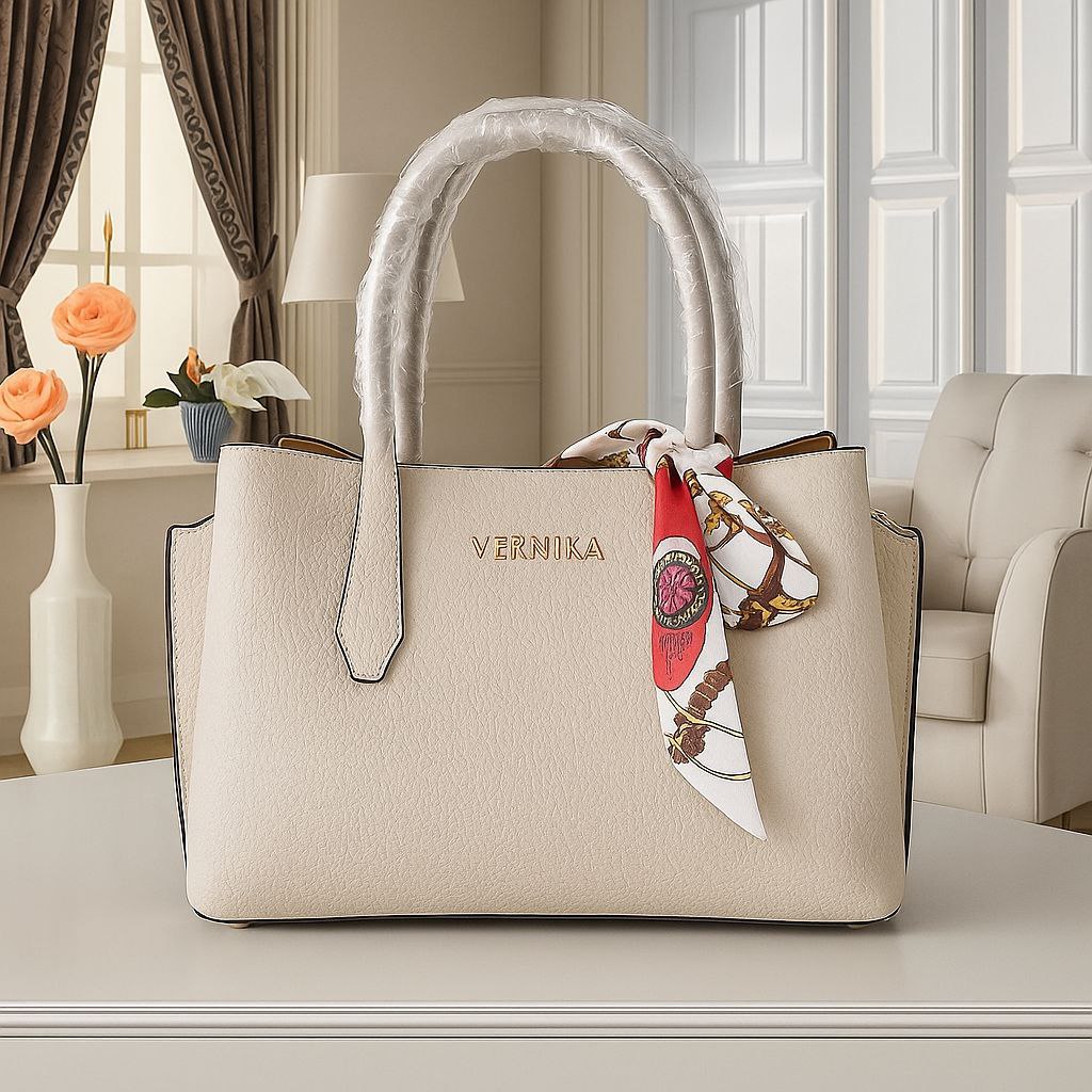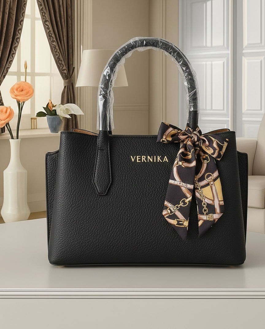 Elevate your everyday elegance with the luxurious "Vernika" tote, crafted from premium soft-grain faux leather for a high-end feel. Featuring a spacious classic silhouette, this handbag is beautifully accented with a stylish silk scarf tied to the handle, offering a touch of sophisticated flair that is perfect for professional or casual outings across the UAE.