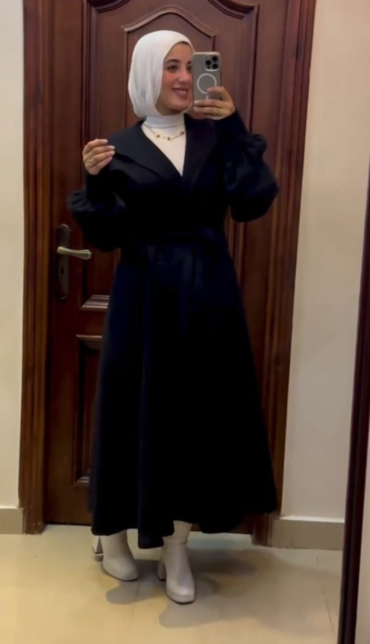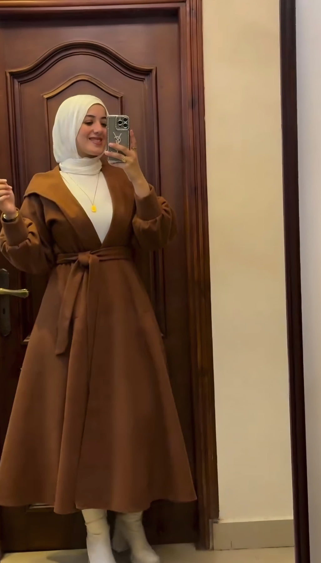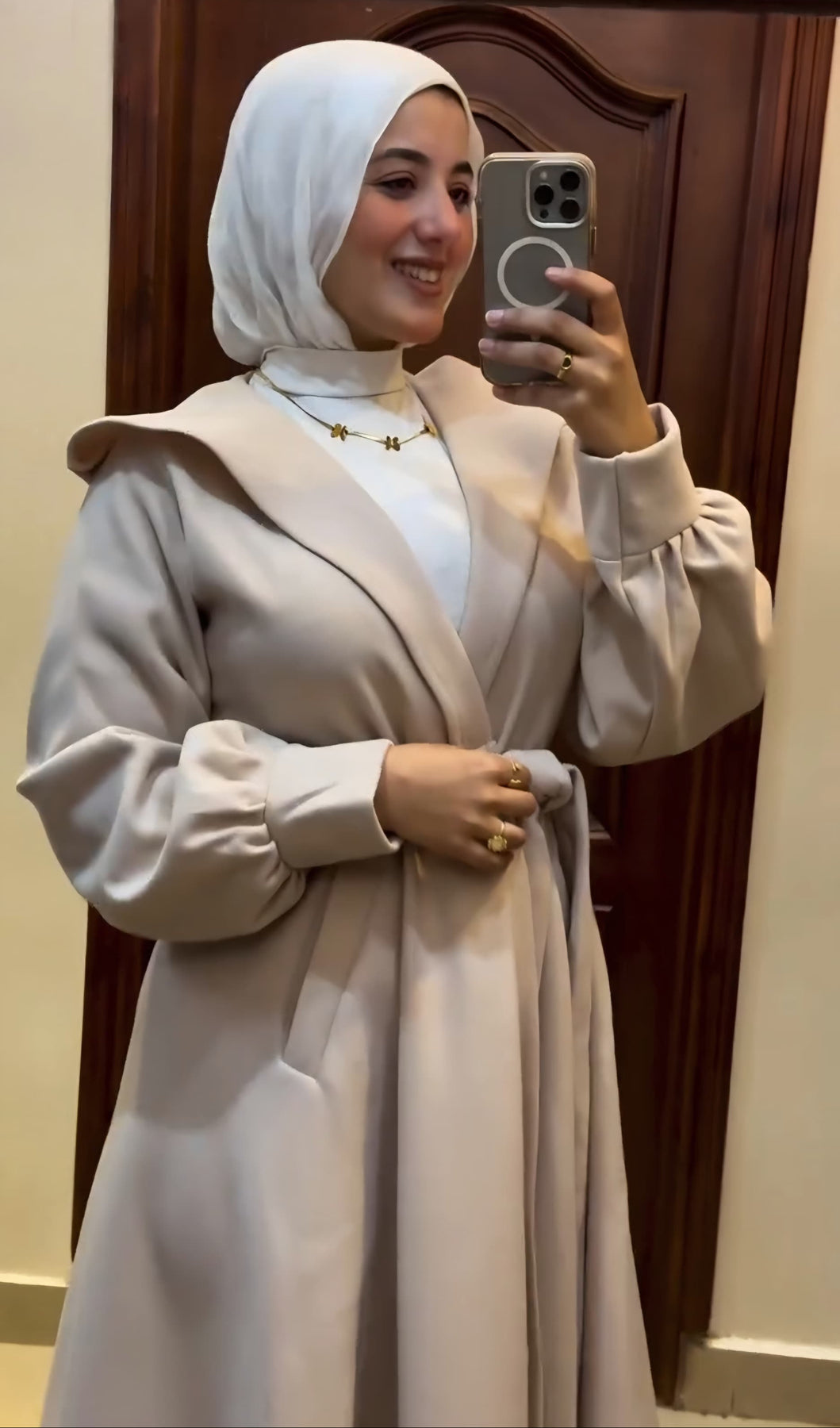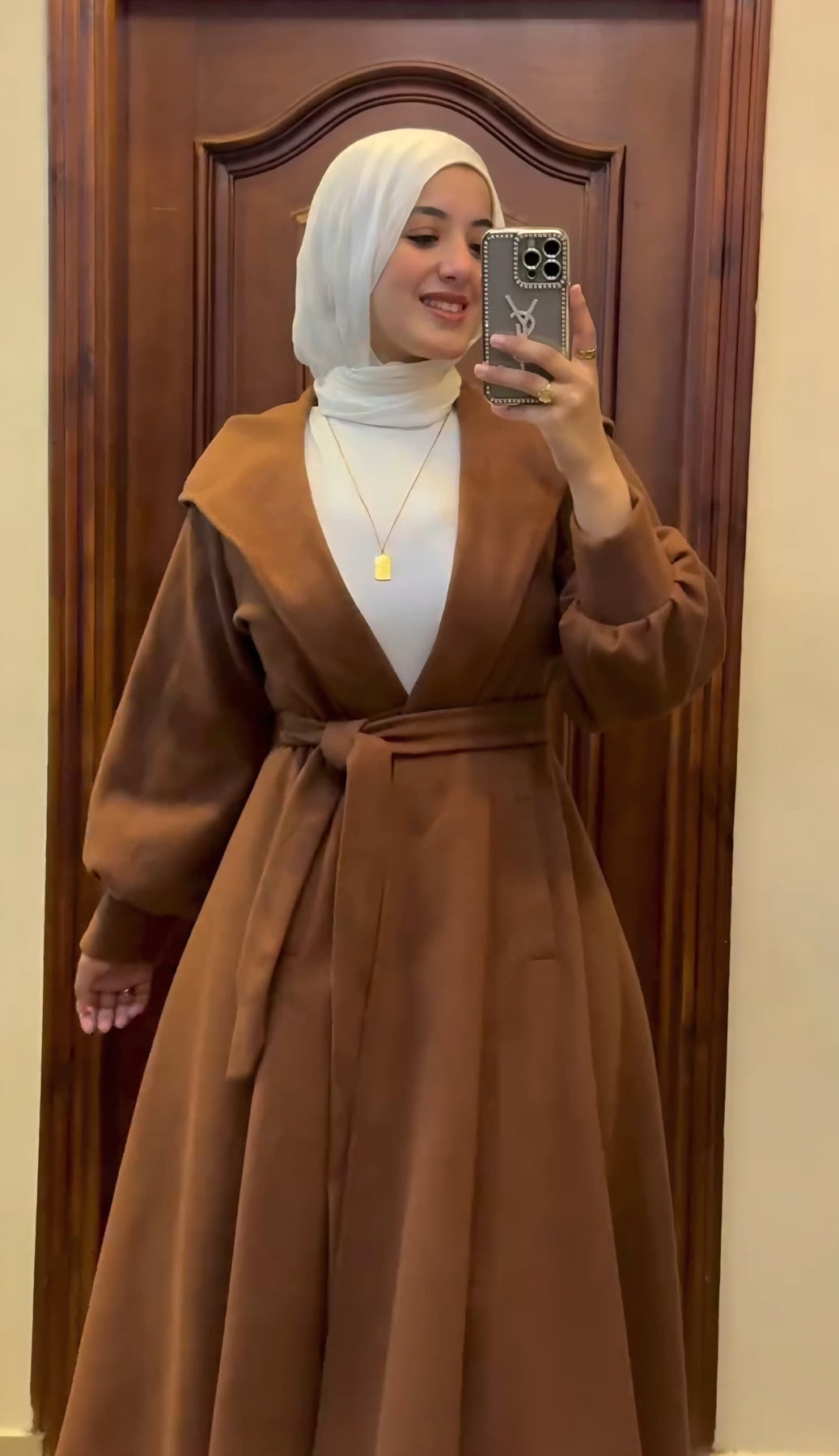 استقبلي الأجواء الباردة بفخامة لا تضاهى مع هذا المعطف الطويل المصنوع من نسيج صوفي ناعم يمنحكِ الدفء والرقي في آن واحد. يتميز التصميم بقصة "كلوش" واسعة من الأسفل تضفي لمسة ملكية، مع أكمام منفوخة تنتهي بأساور عريضة وحزام خصر أنيق يبرز جمال القوام. يأتي المعطف مع ياقة عريضة منسدلة تجعل منه قطعة مثالية فوق ملابسكِ اليومية أو الرسمية، مما يضمن لكِ إطلالة محتشمة وفاخرة تناسب ذوقكِ الرفيع في الإمارات.