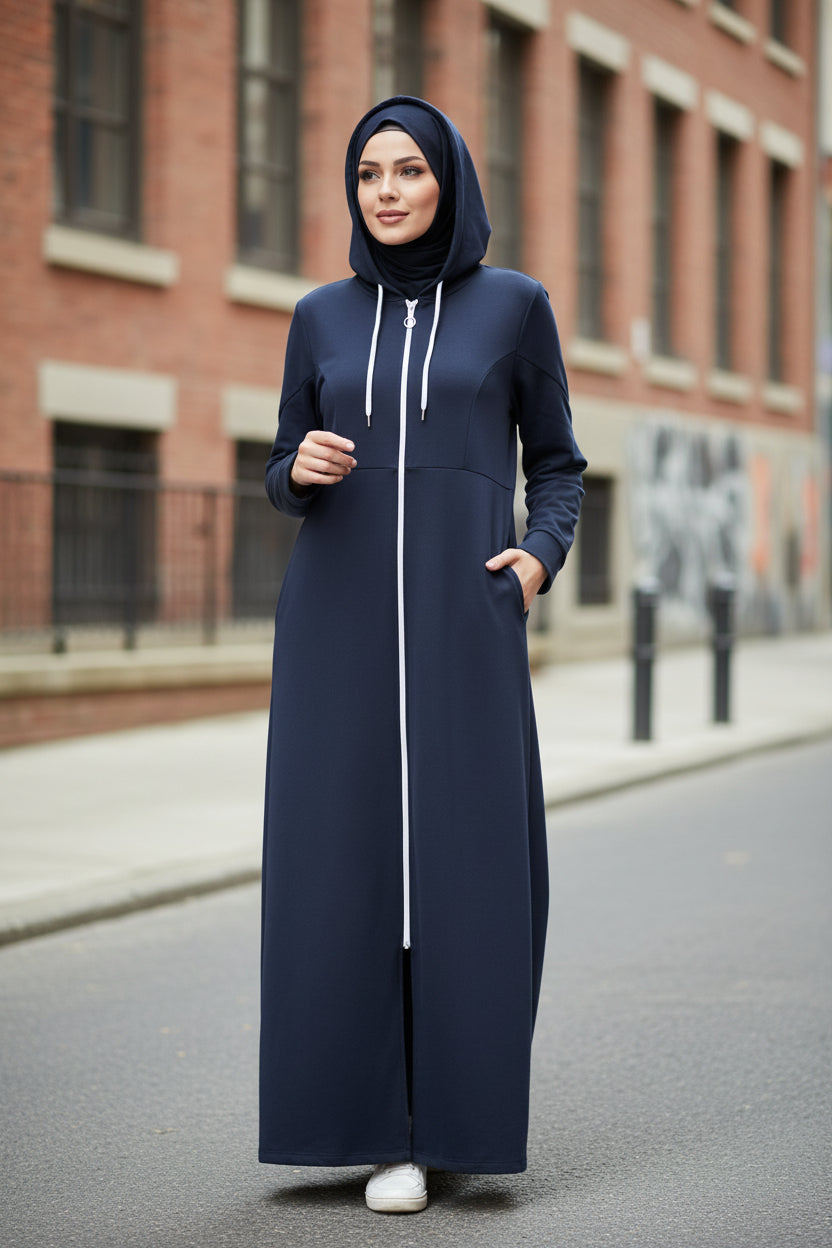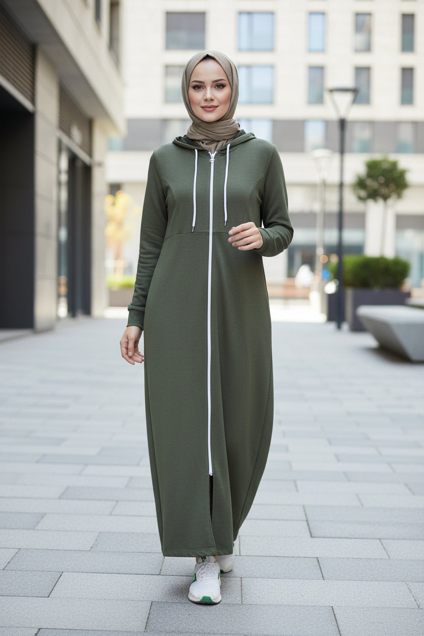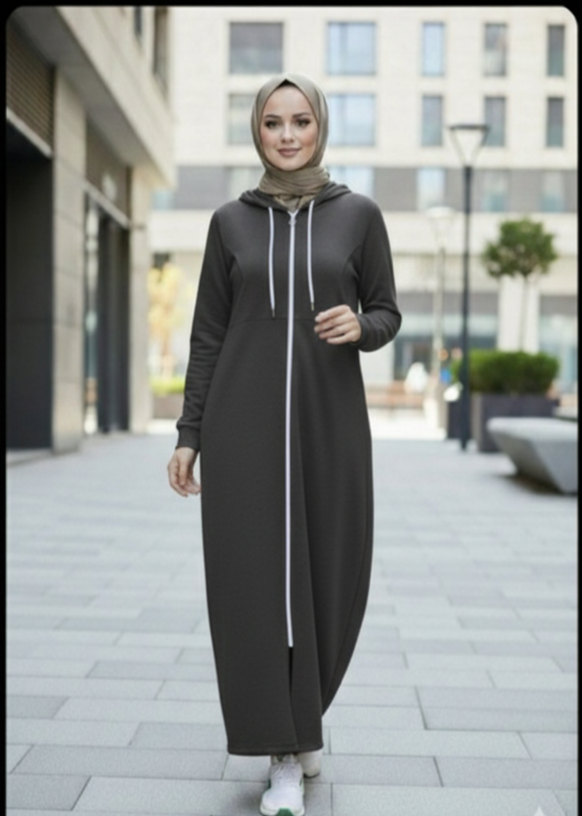 Stay stylish and comfortable with this casual hoodie abaya, crafted from premium soft cotton fabric that ensures maximum breathability and ease for your daily activities in the UAE, featuring a functional zip-up front and hood for a perfect blend of modern sporty vibes and modest coverage.